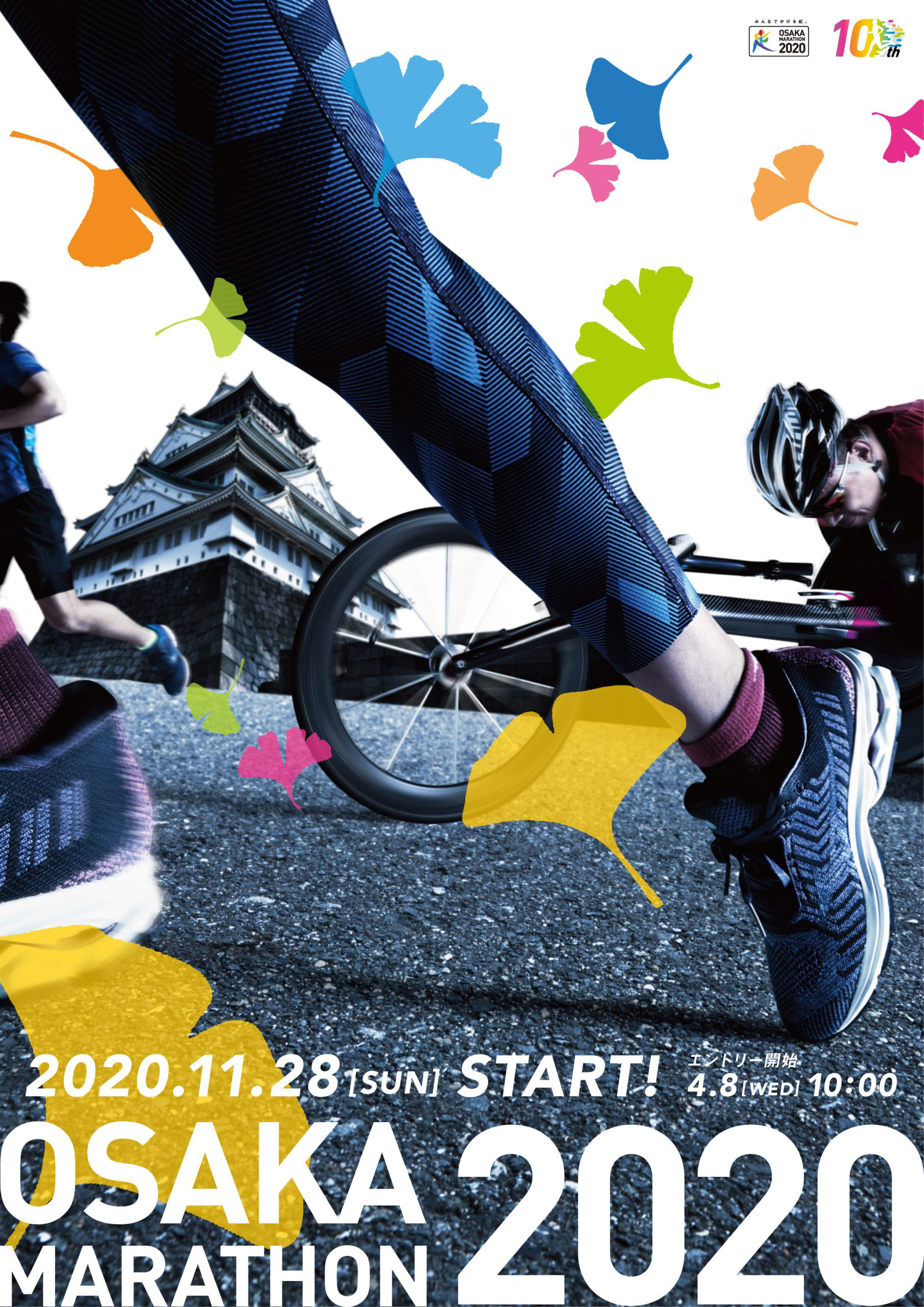 ランナーと車いすアスリートをスタジオで個別に撮影し、現地ロケで撮影した大阪城と統合する構成を設計。動と静、現実と構成が交わる一点を写真として成立させた。