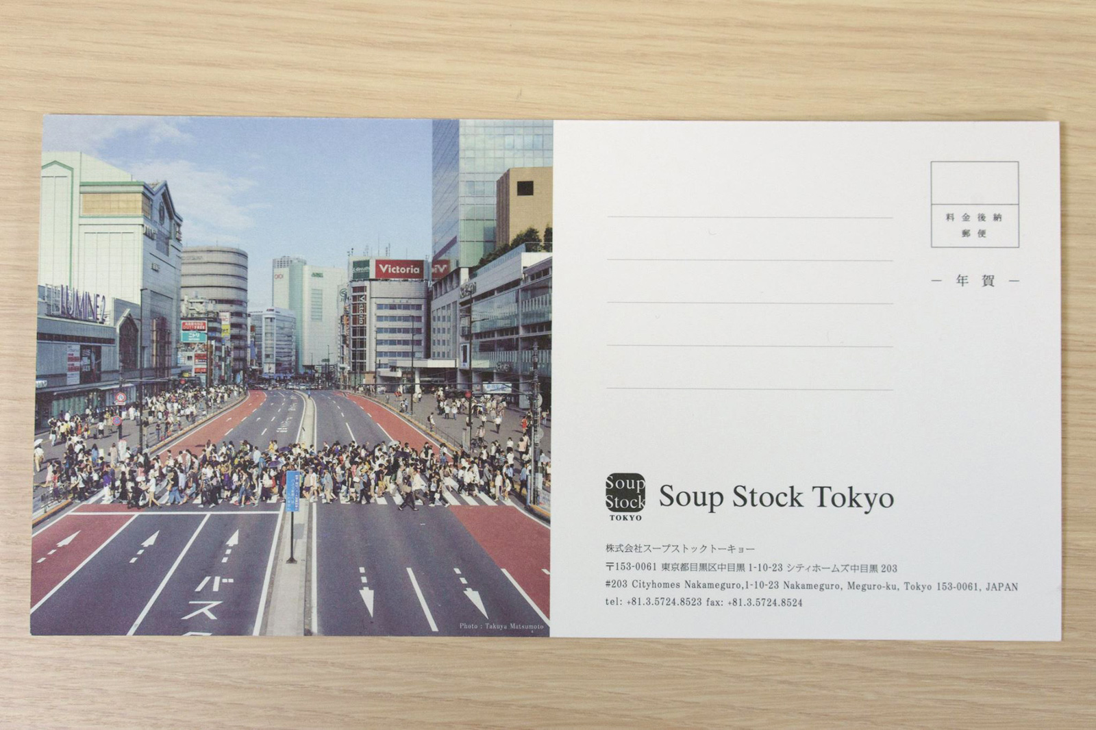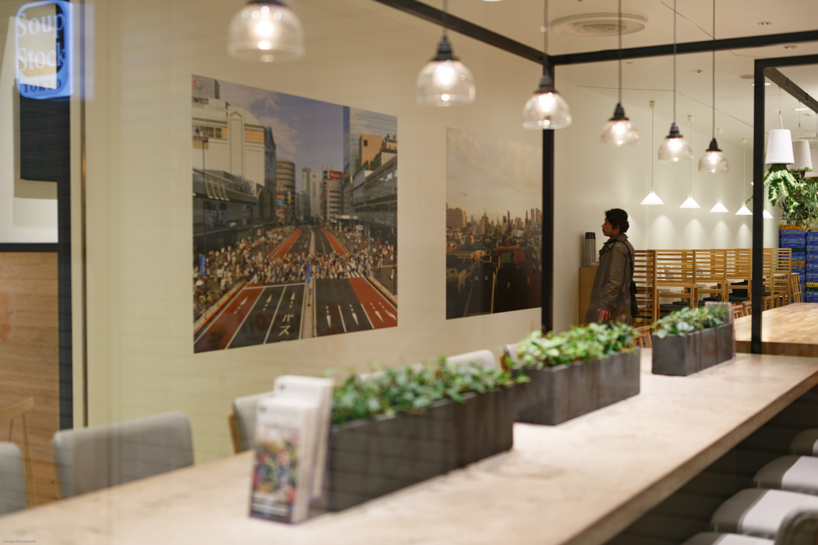 Soup Stock Tokyo 新宿店の壁面アートとして常設展示されている。加えて、同社の年度ポストカードビジュアルにも採用され、店舗限定の写真が、ブランド全体の思想を象徴するイメージへと拡張された。「都市と生活を結ぶ」というブランドの姿勢が、一枚の写真によって視覚的に定着した事例となった。